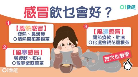 在中醫角度,流感與「時行感冒」相似,而感冒可分為風寒、風熱、風濕及氣虛感冒4種。大家除可注射流感疫苗外,不妨參考黃培基中醫師撰文提出的4款茶飲及5大穴位按摩,一同對抗病毒!