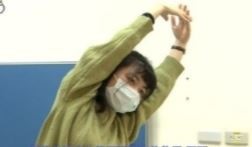 首先將雙手朝頭部上舉方舉至最高,雙手相交緊疊,接著往側邊側躺,伸展側邊的筋膜數秒,之後回正,接著再轉45度角,朝側彎腰伸展側邊筋膜。陳冠誠提醒,扭轉時注意骨盆都是固定在原地,不可隨著上半身側轉移動。另外還可慢慢的向身體下方前彎,雙手試圖去摸到自己的腳,並同時感受到後背有如嬰兒一樣蜷縮起來的感覺,紓緩後背的緊繃感。