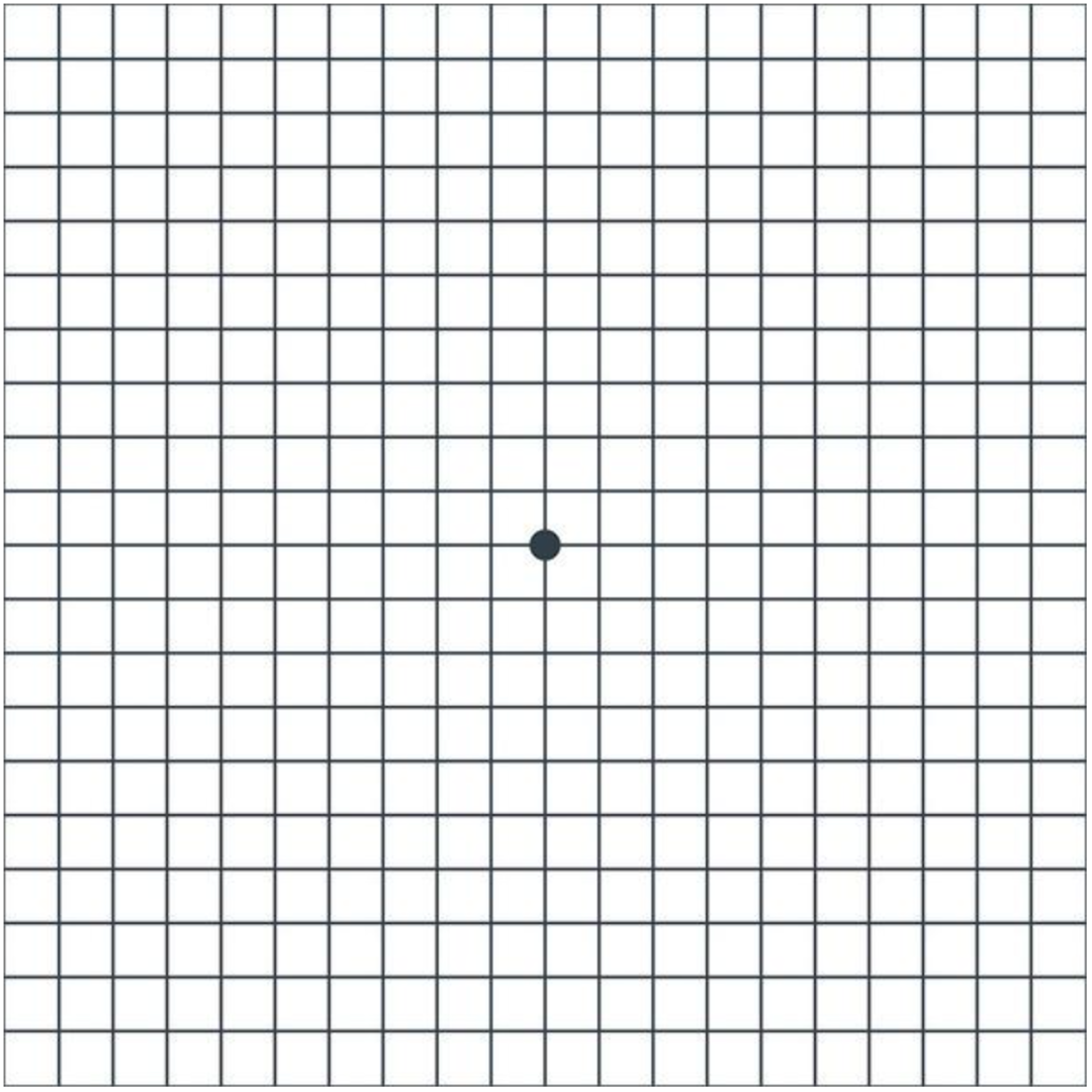 如在檢測時方格出現模糊、線條扭曲或黑點擴散等非直線狀態,就有可能是患上黃斑病變。