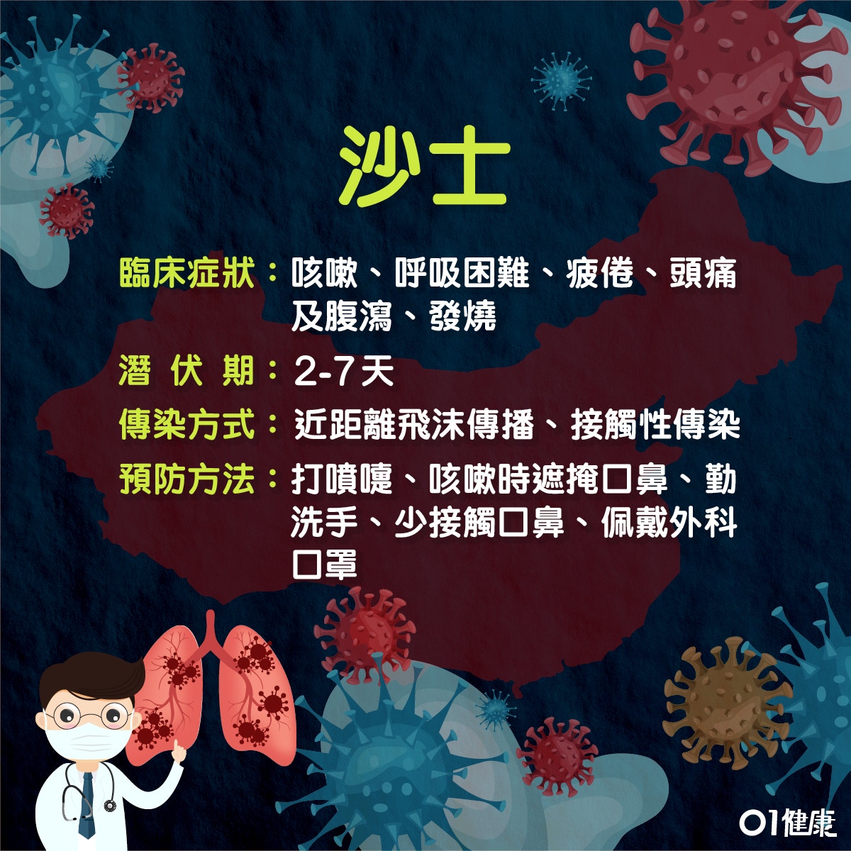 新型冠狀病毒感染引起的重症病例症狀與SARS 類似。