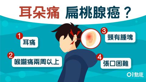 料想不到,耳朵痛居然是扁桃腺癌!台灣南投1名年約50歲的張姓男子近一個月常感到右耳痛,自行塗抹「小護士」軟膏,沒有改善,反而越來越痛,至醫院檢查後竟是扁桃腺癌。