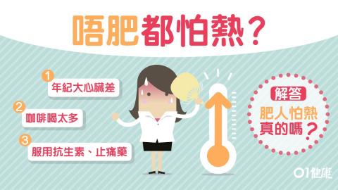 「怎麼還沒到夏天就這麼熱?」、「明明這麼熱朋友卻在穿外套?」、「我是不是身體有狀況,怎麼總是覺得熱呢?」怕熱的人,可能都曾有上述這些想法,因為每個人對冷和熱的忍受程度皆不同。在香港、台灣,如果氣溫高於28度,而且還出大太陽,一般人都會覺得熱,但是如果在冷氣房、或是在舒適的氣溫下,還是持續覺得熱,除了可能有潛在疾病之外,可能還有其他的原因作祟。以下為您整理9種常見怕熱的因素,看看您中了幾項。