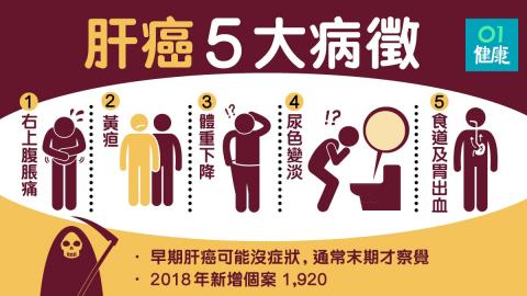 肝癌為香港第三大致命癌症。據食物及衞生局統籌,於今年七月發佈的首份《香港癌症策略》指,肝癌為香港五大常見癌症之一,而報告估算在2018年裏,共有1,920個肝癌新增個案,並估算同年有1,481名人士死亡,因此大眾實在不得不防這個初期病徵不明顯,要至嚴重甚至末期時才有明顯病徵的癌症。