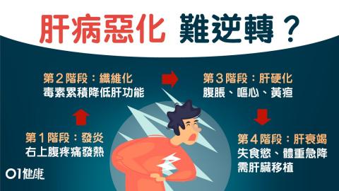 肝臟是體內最重要的器官之一,其功能包括解毒、消化食物及儲存能量,供人體使用,但這些只是肝臟的主要功能,肝臟還有大約500個其他功能,協助維繫人體健康。當肝臟無法正常運作時,全身都會受到影響。以下為肝病的四個階段說明。