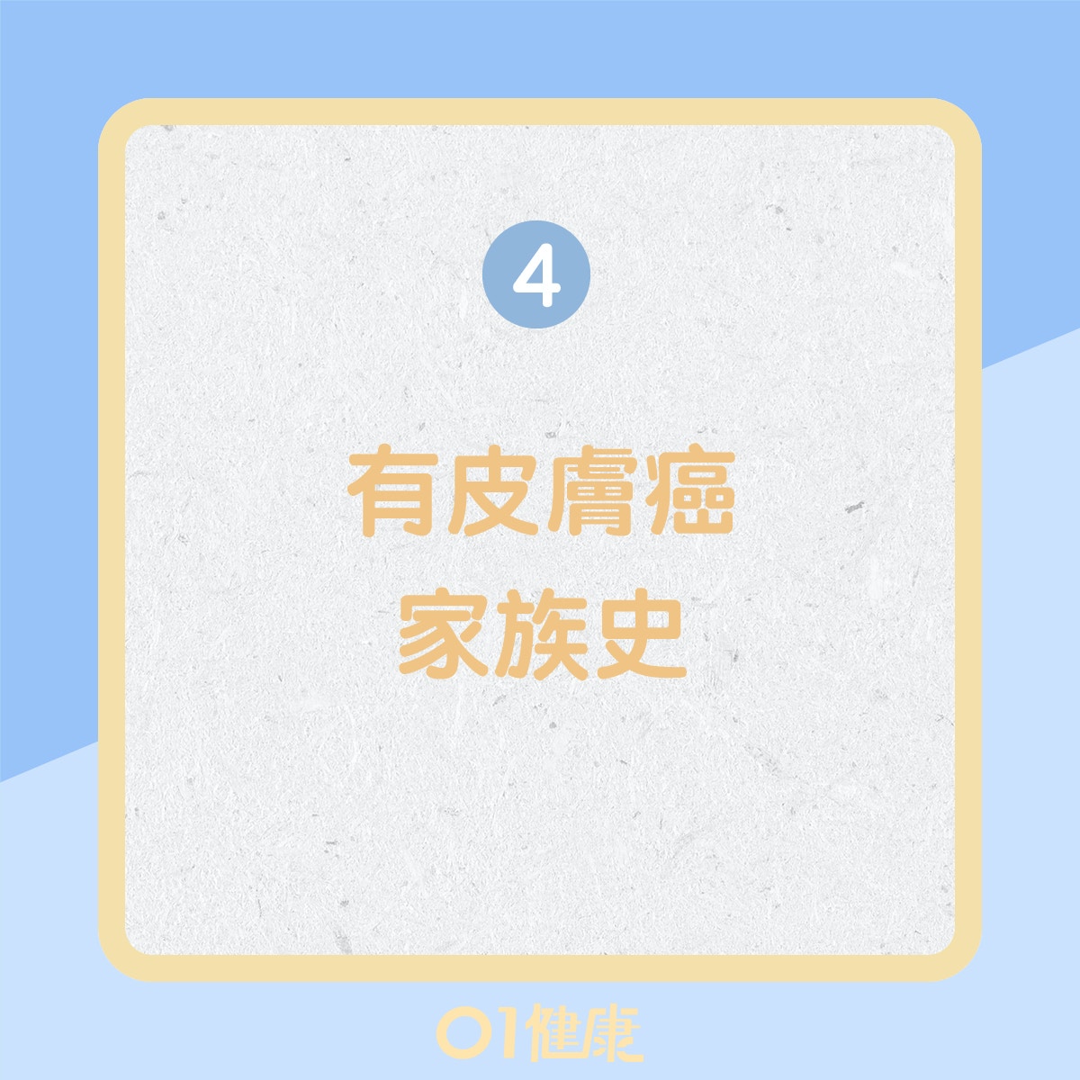 如果有患皮膚癌家族病史,例如有家族成員曾經患過基底細胞皮膚癌,亦會增加患上這個癌症的風險。