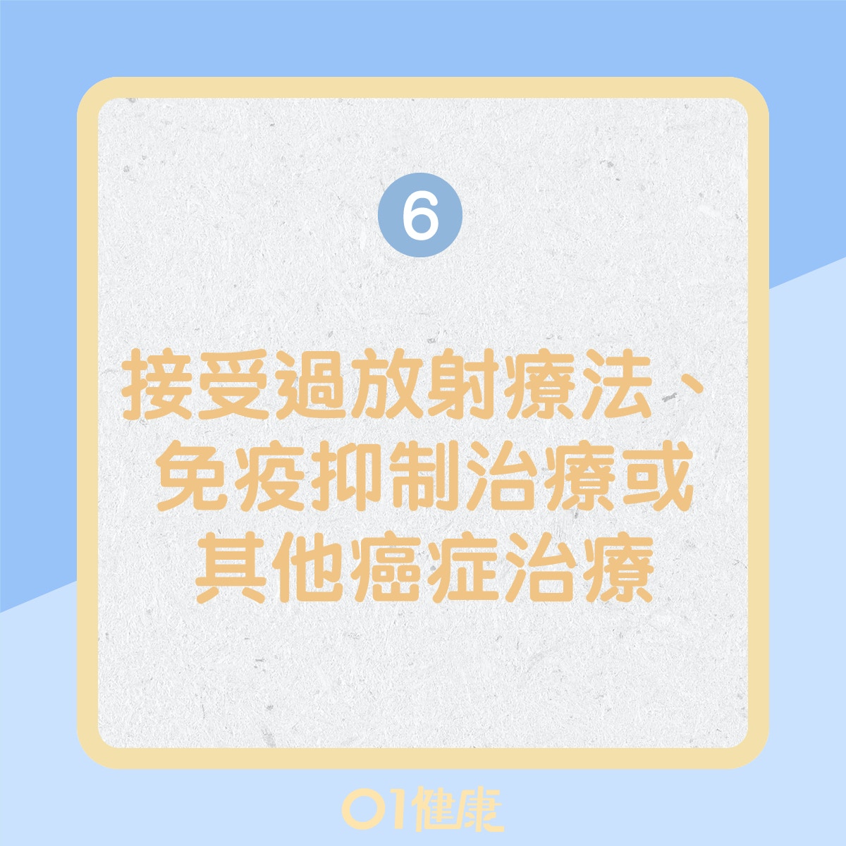 5. 曾患癌症、接受電療,長期服食免疫力抑制藥物