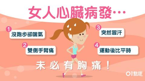 然而要提醒大家,女性患者心臟病發的症狀比較不典型。所以要注意下列警訊。