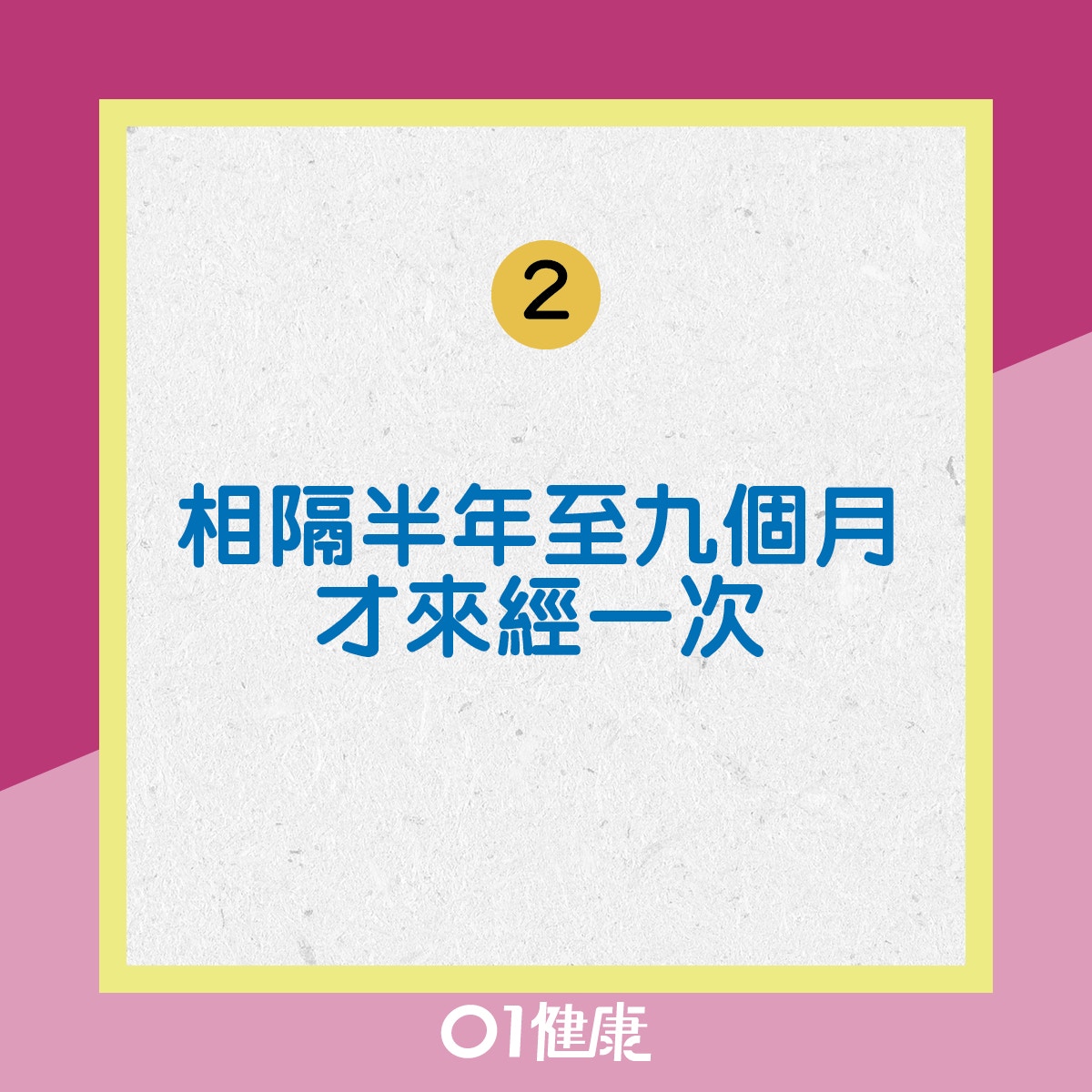 正常女性的月經周期是21天至35天,超過35天便屬於異常,而每隔三個月才來經一次則為俗稱的「四季經」,部分女士更可能相隔長達半年至九個月才來經一次。如持續出現經期紊亂現象,伴隨陰道分泌物增多且帶惡臭,除了與一般婦科疾病有關,亦有機會是初期至中期子宮內膜癌的徵兆。 如每次經期之間陰道不規則出血或停經後出血,便更須注意,皆因約九成子宮內膜癌患者皆有陰道異常出血症狀。